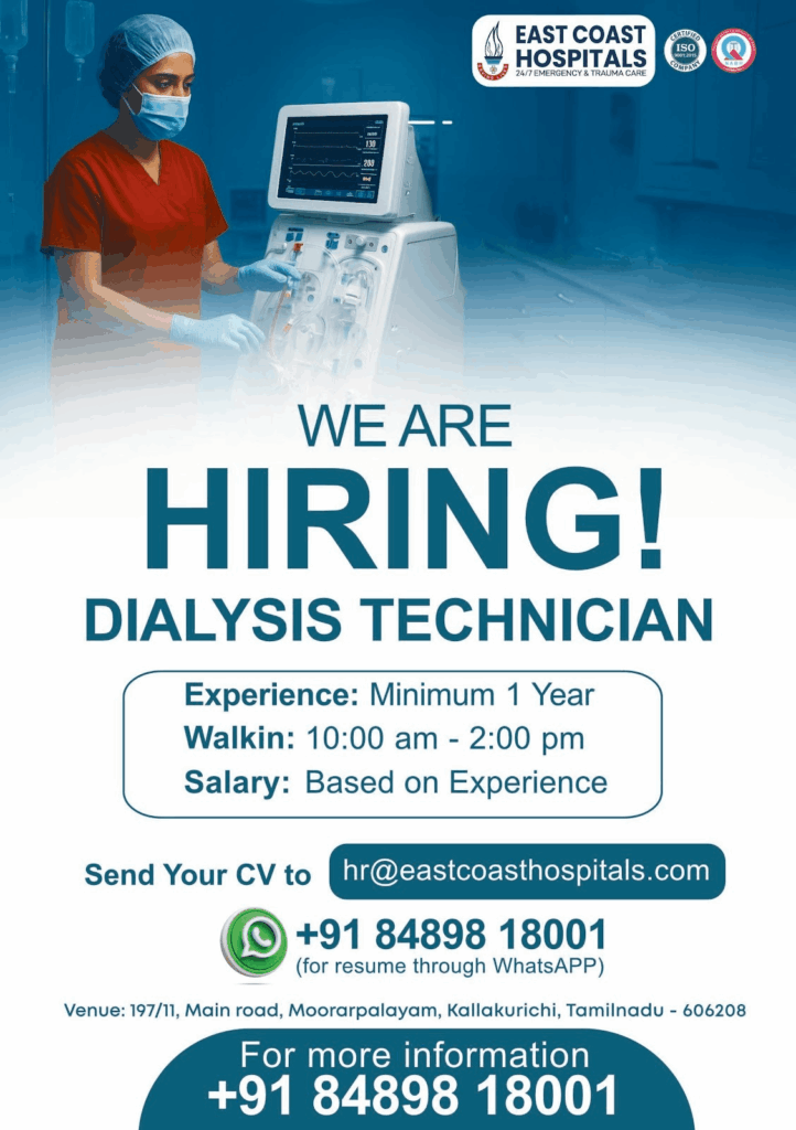 Are you a compassionate healthcare professional looking to make a real difference in patients’ lives? Join our dedicated team as a Dialysis Technician and help deliver life-saving treatment with care, precision, and empathy.